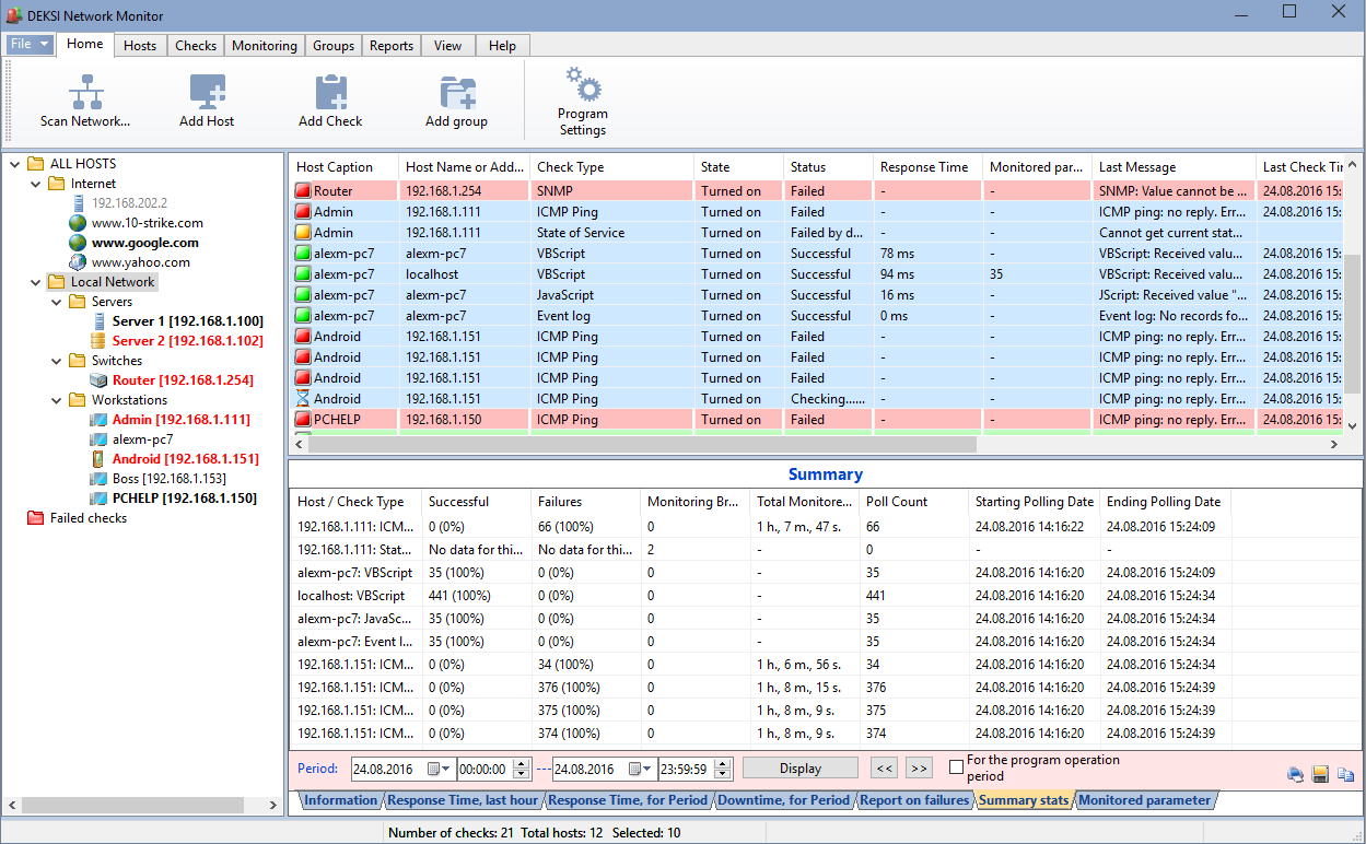 DEKSI Network Monitor will show you when a device is available as well as the time it became unavailable or out of service. This will enable the network administrator or IT Management staff to be pro-active in responding to any possible downtime.